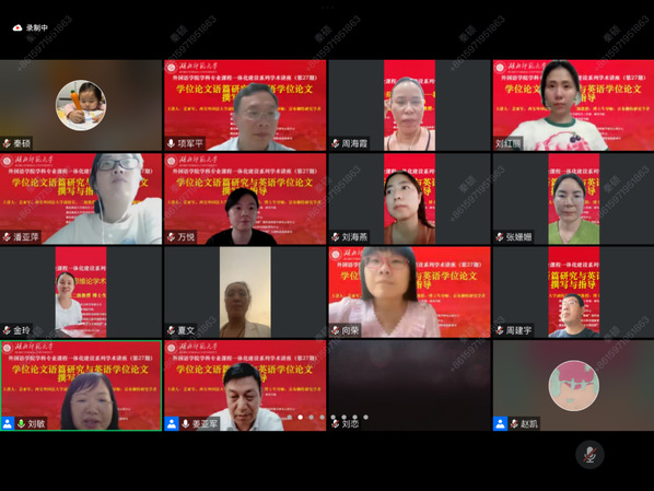 本网讯 为提升研究生导师综合素养,进一步筑牢高质量人才培养提供优秀师资保障,6月26日,研究生院和外国语学院联合组织开展了研究生导师培训专题讲座,本次讲座的主题为“学位论文语篇研究与英语学位论文撰写与指导”,邀请了西安外国语大学副校长、二级教授、博士生导师、富布赖特研究学者姜亚军主讲。湖北师范大学“勤敏”课程思政教学研究示范中心省内外院校教师成员、我校外国语学院全体专任教师、兄弟院系教师、研究生和本科生等参会学习,讲座由外国语学院院长刘敏主持。