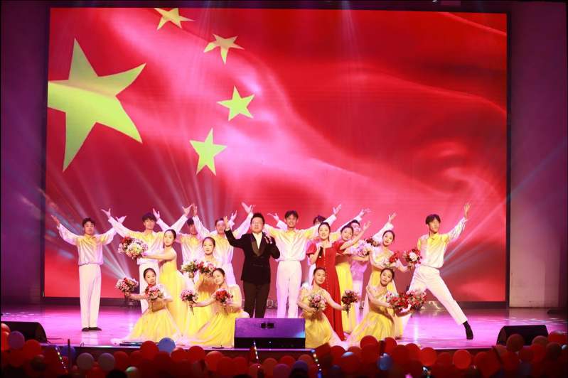 本网讯 礼赞新中国,奋进新征程。9月28日晚,由校团委主办、校大学生艺术联盟承办的2024年“庆国庆 迎新生”文艺晚会在湖师大礼堂燃情上演。