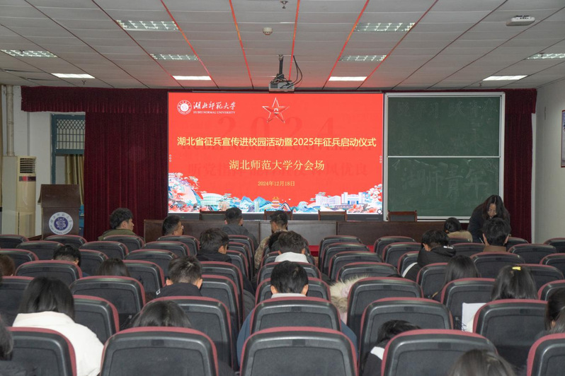 本网讯 12月18日晚,湖北省征兵宣传进校园活动暨2025年征兵启动仪式在华中科技大学举行,此次活动采取线上线下结合的形式进行。我校在信息大楼报告厅设分会场,组织师生在线收看直播。校学工部、人武部副部长胡红贵、黄石港区人民武装部参谋龚剑、各学院负责人武工作的辅导员和学生代表参加了活动。