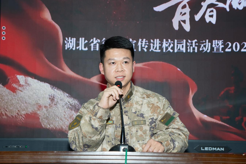 此次启动仪式以“戎装披国志,青春献国防”为主题,意在将英雄精神融入校园文化,点燃学生们的参军热情,引导他们将热血的青春投身于火热军营生活。活动中,我校体育学院退役学生代表曹晓叶,作为湖北省四位宣讲员之一,与其他三位优秀的征兵宣讲员,讲述他们在军营里的感人故事和深刻感悟,进一步激发广大学生参与国防建设的热情,他们的故事深深感染着所有人,赢得阵阵掌声。