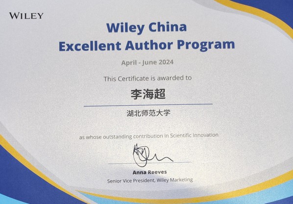 此外,为感谢中国作者在推动科技进步方面所作出的巨大贡献,Wiley中国经过严格评选授予了数位杰出作者“Wiley威立中国高贡献作者”的荣誉称号。由于李海超博士团队2024年上半年在Advanced Quantum Technologies上发表的出色工作(见报道//m.miketmoore.com/2024/0620/c5141a163386/page.htm)受到了读者的广泛关注,李海超博士与合作者共同荣获了2024年第二季度“Wiley威立中国高贡献作者”证书。