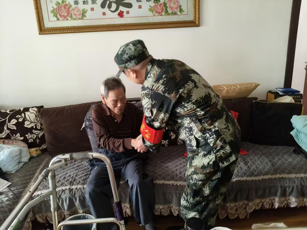 本网讯 为弘扬拥军优属传统,传承红色基因,4月19日,湖北师范大学学工部(处)、人武部组织拥军志愿服务队联合黄石港区市建村社区退役军人志愿服务队开展“致敬英雄·情暖老兵”走访慰问活动,探望96岁高龄的抗战老兵张立忠,聆听他的战斗故事,感受革命年代的峥嵘岁月。