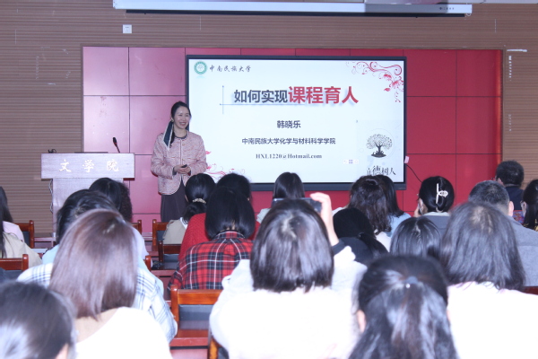 韩晓乐博士的报告以“如何实现课程育人”为题,从课堂教学、课程创新、课程思政角度,报告了如何以学科课程为载体,挖掘专业道德元素,渗透专业教学过程,助力学生全面发展,实现课程育人的路径办法。报告在青年教师和师范生中引起热烈反响。