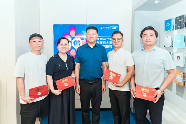 马列军还向校友赠送了校庆邀请函。他表示,今年是学校建校50周年,母校诚挚邀请各位校友重聚校园,共忆青春时光、共赏湖师新貌,共庆母校华诞。