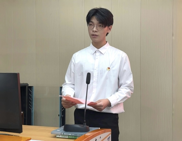 2309班周恩康同学代表全体学员郑重承诺:将珍惜本次团校的学习机会,严格遵守团校的各项规定,发挥模范带头作用,在学习、生活中践行诺言。刘嘉艺同学宣读了团校的纪律、要求,说明了团课考核细则,要求每位学员严格要求自己,认真遵守团校纪律,以身作则。