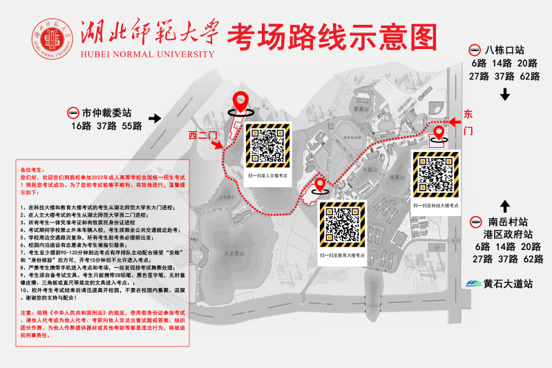 2023年全国成人高校招生考试湖北师范大学考点考生赴考须知