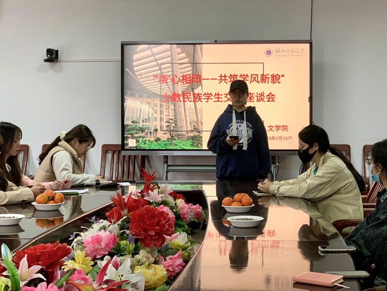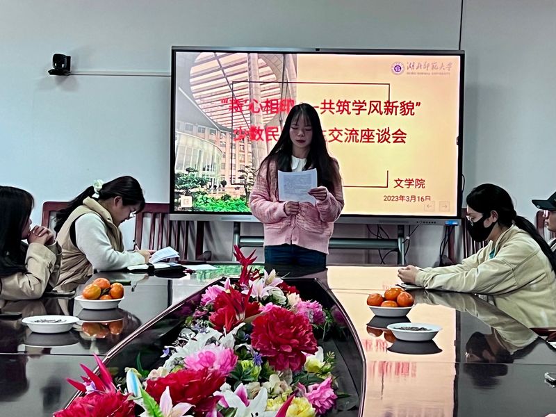 为进一步了解新学期少数民族学生学习、生活情况,加强学风建设,文学院于2023年3月16日下午在人文楼21A505召开了“‘新’心相印——共筑学风新貌”少数民族学生交流会。学生会干事王誉烨、沈岩主持会议,辅导员董雅芳和文学院各年级少数民族学生代表参加会议。