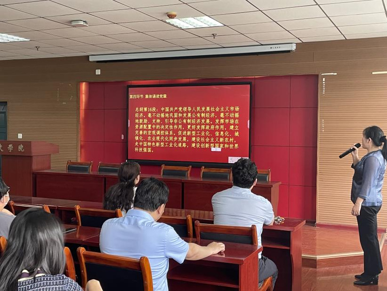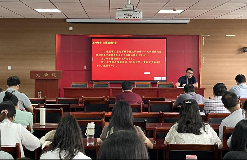 为深入学习贯彻党的二十大精神,扎实推进主题教育走深走实,进一步提高文学院党员师生政治站位与理论素养,2023年5月25日下午,文学院师生党支部在人文楼21A602开展学习贯彻习近平新时代中国特色社会主义思想主题教育联学主题党日活动。文学院教师第一、第二党支部和学生第一、第二、第三党支部全体在校党员参加。活动由教师第二党支部委员姜金明主持。