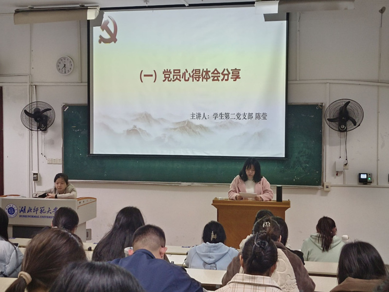 分享学习体会环节,由学生第一党支部宋玉洁同志、第二党支部杨晴如同志、第三党支部石佳同志与大家分享学习体会。她们表示,通过本次学习更加深入了解了中国共产党的性质、指导思想、宗旨和基本路线、“两会”精神等内容。作为一名共产党员,必须始终坚持党的宗旨,全心全意为人民服务,为实现中华民族伟大复兴的中国梦接续奋斗。