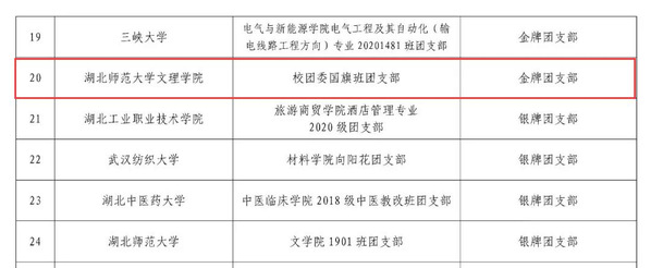 (通讯员:刘萍萍)近日,2021年度湖北省“百生讲坛”活力团支部评选结果公示,我校2019级国旗班团支部以优异的成绩在5个赛区中脱颖而出,荣获2021年度“百生讲坛”省级活力金牌团支部。