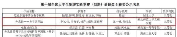 本网讯(通讯员 江一帆)11月29日,第十届全国大学生物理实验竞赛(创新)决赛圆满落幕,我校学子荣获一项二等奖,两项三等奖。