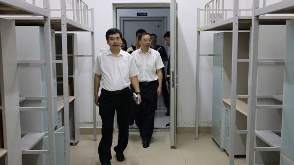 郝胜勇一行深入学生宿舍、实验楼、食堂等重点区域,实地检查消防及安防设施配备与运行情况,详细了解学校在防暑降温、基孔肯雅热疫情防控、学生防范电信诈骗教育、校园周边环境综合治理等方面的工作进展和风险排查整改落实情况。