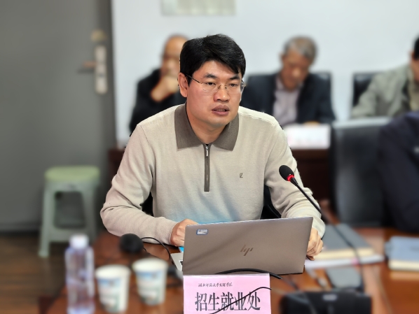 会上,招生就业处副处长肖劲光分析了我校招生工作当前面临的形势,系统总结了2025年招生与就业工作,并就下一阶段工作安排及具体要求作了布置。