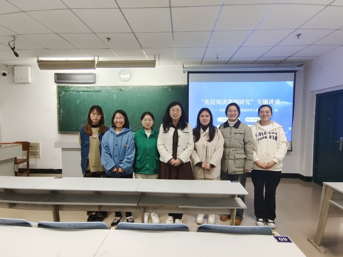 3月27日晚,外国语学院学科专业课程一体化建设系列学术讲座在人文楼21B409成功举行。湖北师范大学外国语学院语言学教研室主任、硕士生导师刘瑶瑶副教授应邀为“优师计划”英语专业师范生做乡村理解教育主题讲座---“英语阅读课例研究”。2021级英语专业“优师计划”师范生参与学习。