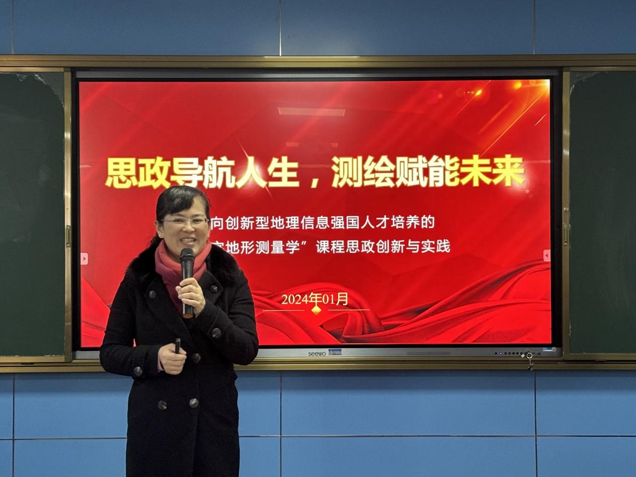 黄海兰教授做了题为“思政导航人生,测绘赋能未来”的专题讲座。她从创新大赛相关文件解读、课程思政创新报告撰写、课程思政创新课堂设计、课程思政创新现场汇报和教学创新大赛理解感悟等方面围绕课程思政建设和教学创新实践做了详尽的阐述和分析。