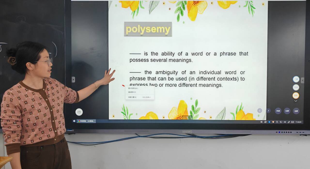 为提升教学质量,加强同行交流与合作,提高教师的专业素养和教学水平,外国语学院英语系综合英语教研室、综合技能教研室、语言学教研室和文学与翻译教研室于3月26日至4月7日在人文楼组织开展了一系列观摩示范课活动。此次活动旨在通过观摩优秀教师的课堂表现,交流教学经验,共同探索更有效的教学方法,以推动教学质量的持续提升。