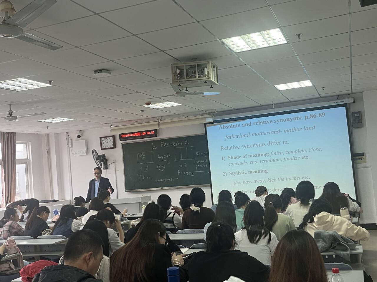 4月2日上午,南潮教授在21B508教室讲授英语词汇学课程,语言学教研室所有教师观摩了本次授课。