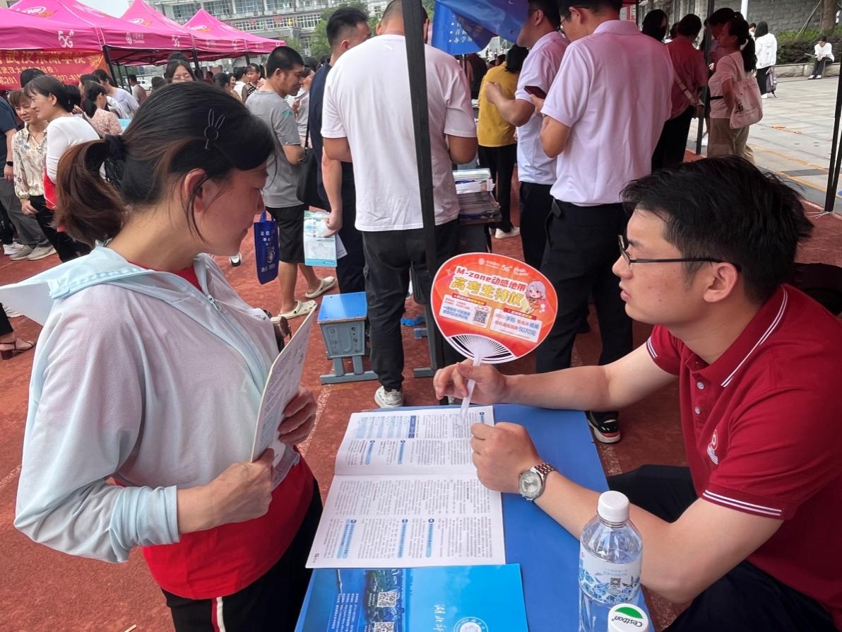 (外国语学院学工办主任黄志军在团风中学接待考生及家长咨询)