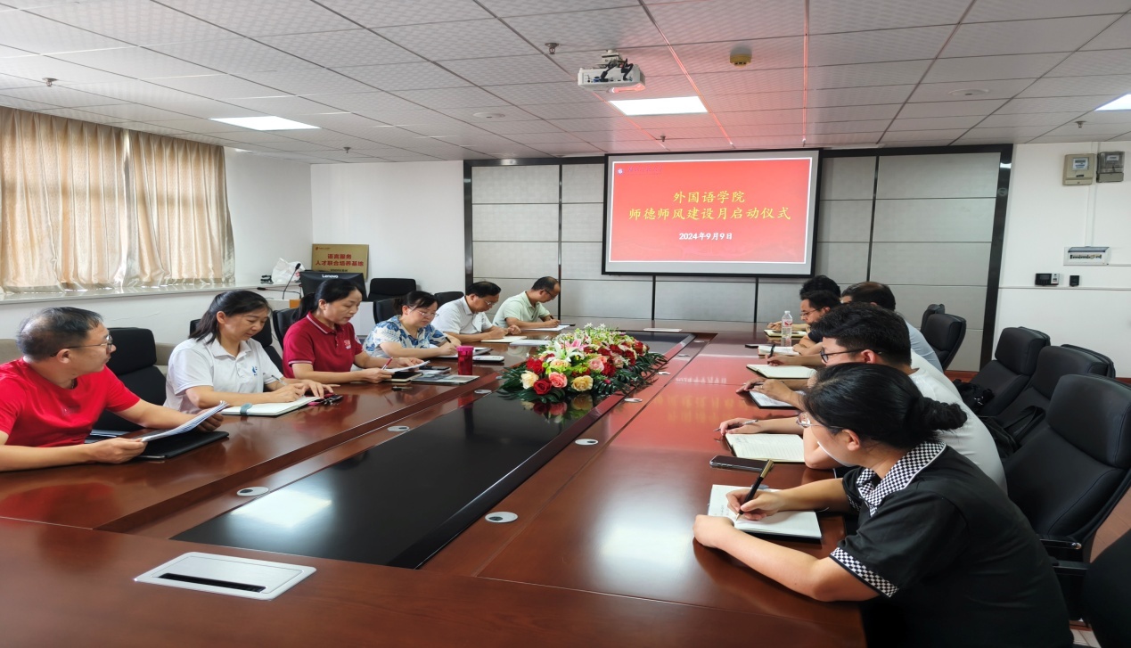 为大力弘扬教育家精神,加强新时代高素质专业化教师队伍建设,进一步营造尊师重教良好氛围。9月9日下午,外国语学院召开了师德师风建设月启动仪式。外国语学院班子成员,党政联席会成员以及2024年度先进教师代表参加会议,会议由外院党委书记王海燕主持。