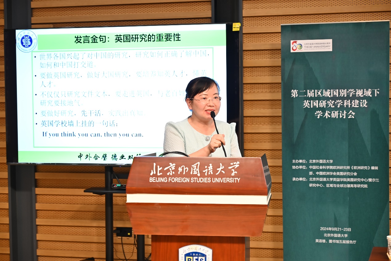 9月21日至23日,第二届“区域国别学视域下英国研究学科建设”学术研讨会在北京外国语大学举办,来自北京大学、中国人民大学、南京大学、复旦大学、中国政法大学、外交学院、中国社会科学院等30余所高校和科研机构的专家学者齐聚一堂,结合国内外英国研究的最新研究成果和人才培养的实践经验,探讨开展英国研究的跨学科综合研究对区域国别学和外语学科国别和区域研究方向发展的样本意义和启示。我校副校长、欧洲科学院院士余翔受邀为本次大会致辞,外国语学院院长刘敏代表我校英国研究中心做主旨报告。