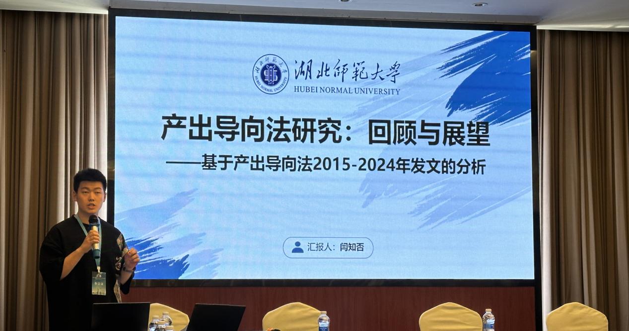 在分组研讨环节,闫知否以《产出导向法:回顾与展望》为题进行学术报告。通过梳理2015-2024年知网核心期刊文献,结合可视化图谱分析,系统阐释产出导向法的理论发展现状,并提出技术赋能教学等前瞻方向,引发与会学者的关注。