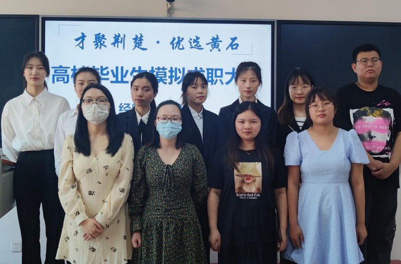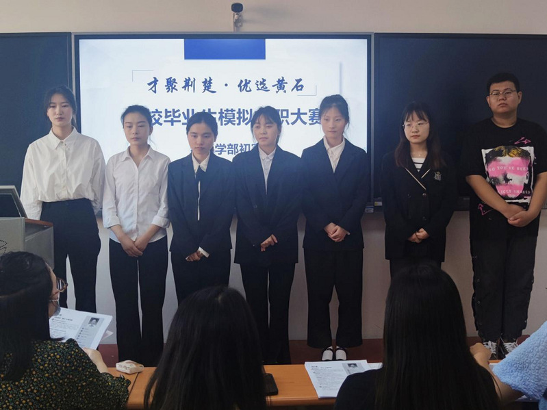 面试结束后,所有选手返回面试室,评委老师根据大家的简历以及展示中遇到的问题提出指导建议。上一届“才聚荆楚,优选黄石”黄石市“筑梦职场”求职大赛的“十佳选手”黄丽玲同学也为各位学弟学妹进行了精彩的经验分享。