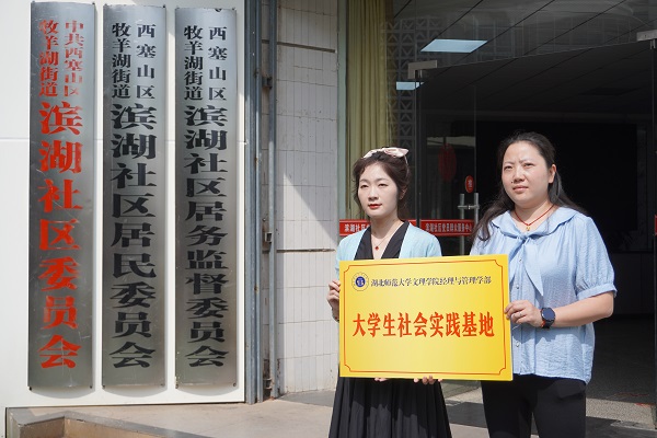 5月10日上午9点,经济与管理学部与西塞山区滨湖社区举办了“大学生社会实践基地”暨“党团共建单位”授牌、挂牌仪式。校团委书记陈荟芸、经济与管理学部党总支副书记罗铭、团总支书记姜希望、学工办副主任吕彩云、辅导员郑莎莎、学生代表以及滨湖社区党委书记易姣、党委副书记王余晖参加此次活动。