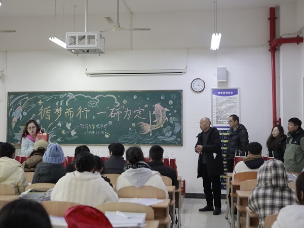 在考研倒计时的紧张氛围中,为鼓舞士气、传递关怀,12月17日下午3点,经济与管理学部主任徐燕、党总支副书记罗铭带领辅导员老师们看望慰问正在备战考研的学子们,助力他们坚定信心,冲刺梦想。