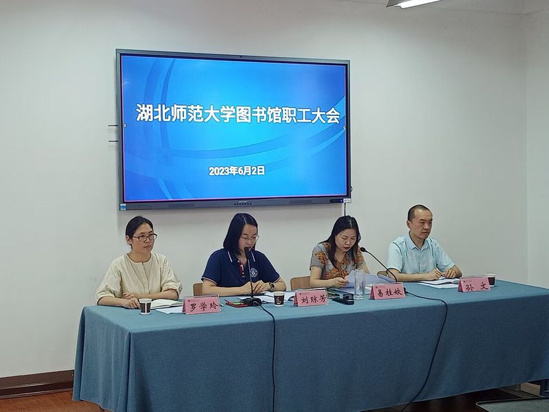 本馆讯 6月2日下午,图书馆召开全馆职工大会,宣布学校党委的干部任免文件。图书馆班子成员、全馆职工参会,会议由图书馆馆长易桂姣主持。