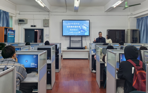 为提高师生文献信息获取、分析和利用的能力,助力课程学习和专业研究,11月18日至29日,图书馆在一楼电子阅览室开展了面向全校师生的“信息素养提升季”系列培训。各学院学生踊跃报名参加培训。