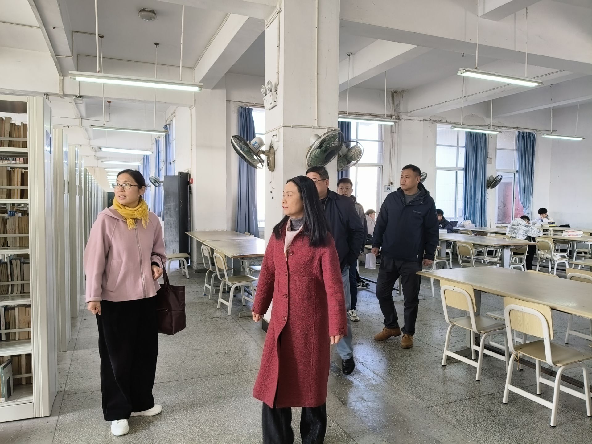 副校长王赛玉一行实地考察了图书馆,详细查看了曦林阅读广场、五楼借阅七室、六楼借阅室等地,重点就消防、环境、治安等方面仔细开展了安全风险隐患排查工作。对于现场发现的问题,她提出了相关整改要求。