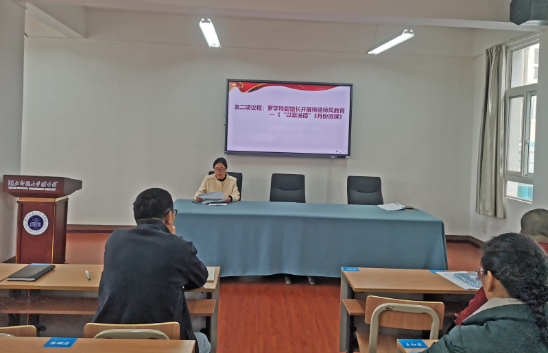 在“以案说德”师德师风学习教育环节,罗学玲副馆长为全体馆员讲授了《“以案说德”3月份微课》,领学了习近平总书记关于教师队伍建设的重要论述,讲述了我校体育学院教授胡安义老师的先进典型事迹,通报了南京师范大学环境学院宋某某与山东第一医科大学徐某师德失范行为的反面典型案列,并在清廉湖师故事会专题讲述了时代楷模刘伦堂的感人事迹。