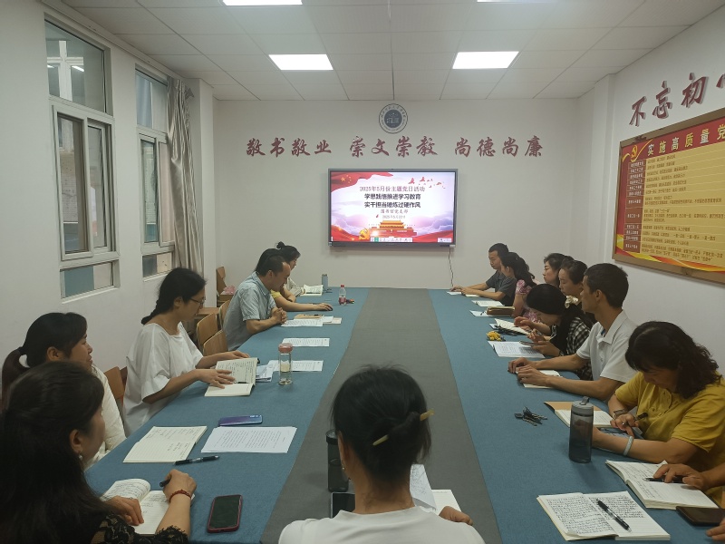 本网讯 2025年5月22日上午,图书馆党支部在二楼会议室开展主题为“学思践悟推进学习教育,实干担当锤炼过硬作风”的主题党日活动,全馆党员参加,党支部组织委员胡皓主持会议。