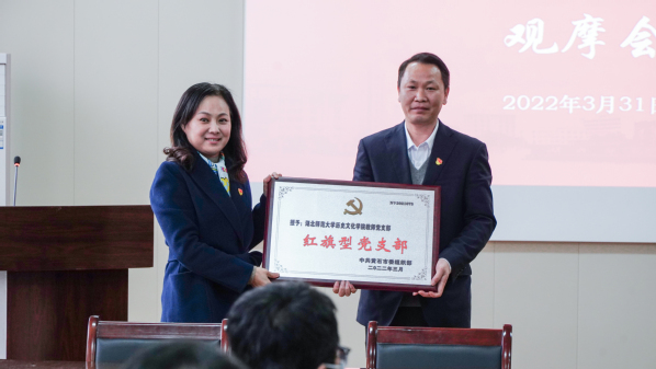 3月31日下午,在音乐学院13311会议室召开的“党组织会议和党政联席会议”观摩会上,校党委副书记马列军通报喜讯:中共黄石市委组织部发布文件,历史文化学院教师党支部荣获“红旗型”党支部荣誉称号,获得市委组织部通报表扬。校纪委书记陆咏梅同志向历史文化学院颁发了奖牌。