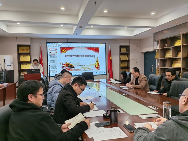 3月17日下午,历史文化学院教师党支部在人文楼会议室开展“深入学习二十大,助力创建文明城”主题党日活动,支部全体党员参加活动,活动由教师支部书记穆昭阳同志主持。
