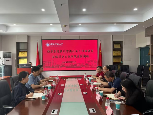 2024年7月31日,黄石市委社会工作部部长杨锋、副部长汪洪峰,以及黄石市民政局基层政权建设和社区治理科科长胡竹君一行,前往湖北师范大学历史文化学院进行走访调研,旨在进一步加强校地合作,推动人才共育与实习就业工作的深度融合。湖北师范大学历史文化学院党委书记李涛、院长蔡明伦、党委副书记黎哲、副院长张强等学院领导热情接待了来访嘉宾,双方就人才培养、实习实训、科研合作等方面进行了深入交流。