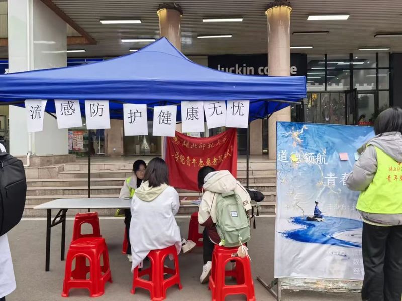 近日流感频发,为增强师生的防护意识与能力,3月10日,我院青大队联合文学院、化学学院、城市与环境学院青大队,于琼林苑门口举办了以“流感防护,健康无忧”为主题的摆点活动。本次活动通过趣味互动与知识科普相结合的形式,吸引了众多师生参与,有效地普及了传染病防护知识。
