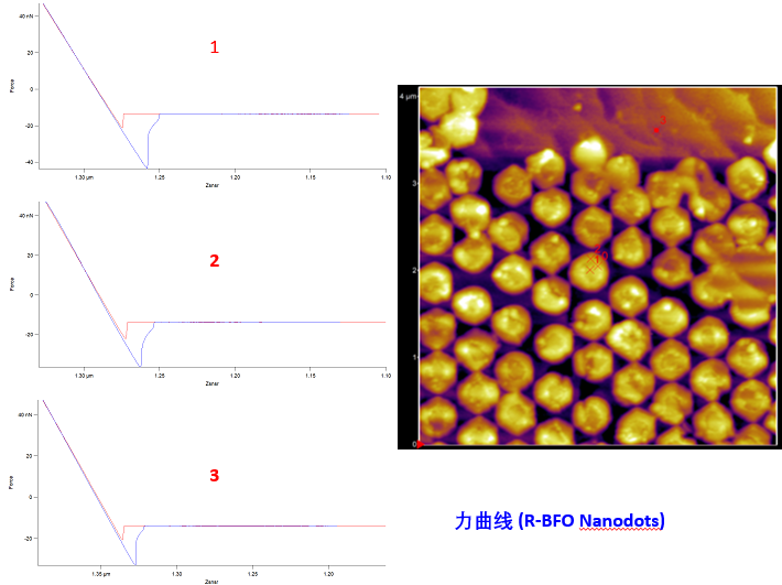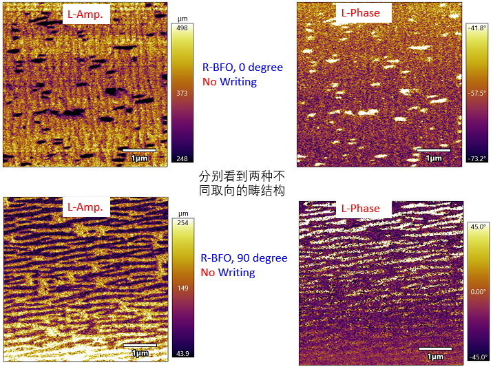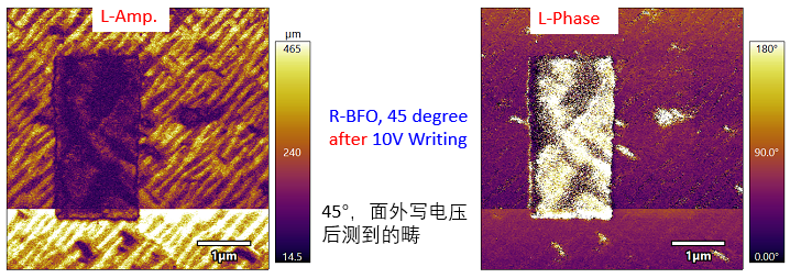 测试项目:形貌,力曲线,PFM的两种相位模式,写畴,扫描电压测电信号