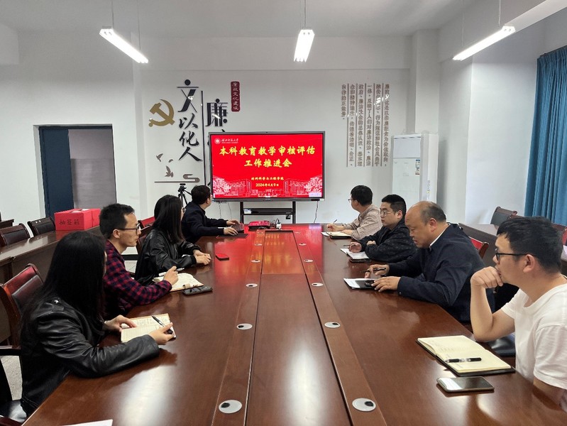 为继续推进本科教育教学审核评估自评自建工作,4月9日下午,学院在24424会议室召开本科教育教学审核评估工作推进会。学院审核评估工作小组全体成员参加了会议,会议由党委书记刘飞主持。