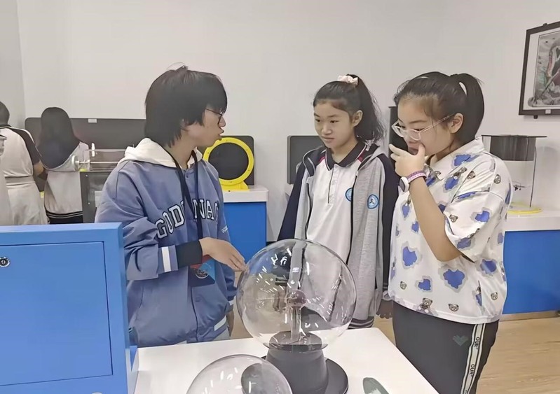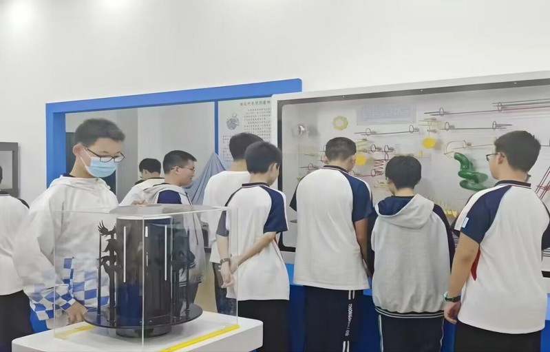 活动现场,在科普讲解员的带领下黄石市第十六中学的学生5人为一组,分别走进科普基地不同展区依次进行参观学习。讲解员积极引导学生观察演示实验,认真讲解有趣的实验现象,并详细解释其现象背后所蕴藏的物理原理,让学生体验了物理学习的乐趣。同时,在讲解员的引导下,学生们积极参与互动交流,主动操作演示实验仪器,极大地激发了他们的好奇心,让他们对物理现象有了一个更具深度的认识。在轻松愉悦的科普氛围中,学生们不仅学习了新的知识而且体会到了科学的魅力。