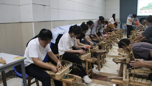 夜间,综合楼的教室里。在老师的带领下,队员们学习了草鞋的历史知识,并在草鞋师傅的悉心指导下亲手编织草鞋。通过亲身体验,队员们感受“草鞋精神”所蕴含的艰苦朴素、自力更生的优秀品质。这不仅仅是一次简单的手工活动,更是一次心灵的洗礼和精神的升华。