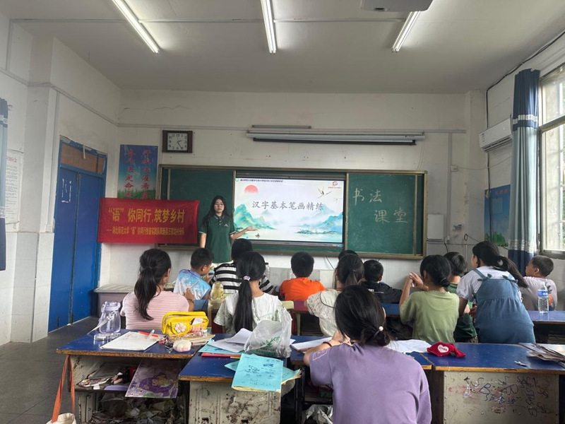为了推广普通话和规范汉字书写,夯实当地学生的基本功,进而推动乡村教育的发展,助力乡村振兴战略的实施,推普队精心筹办了“三字一话”钢笔字和粉笔字比赛活动。活动伊始,推普队员为学生们呈上了一堂墨香馥郁的书法课程;活动进行时,学生在推普队队员的带领下朗读了比赛内容中华经典诵读篇目《诗经·蒹葭》,继而进行创作。与此同时,推普队队员亦在旁悉心指导,给学生们提出合理的建议;活动最后,由师生共同评选出此次比赛的获胜学生。