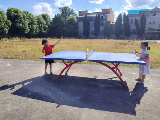 对于炎炎夏日,队员们提出了室内室外混合教学法。在室内,播放奥运会乒乓球比赛转播,激发孩子们的体育兴趣;在室外,队员们手把手向孩子们介绍了乒乓球的基本规则和技巧,单独纠正他们的握拍姿势和击球动作。这种教学模式很好地平衡了孩子们“怕晒、怕热“”和“想玩、不会玩”的矛盾。孩子们热情高涨,很快就掌握了基本要领,迫不及待地开始练习。紧接着的对战环节更是将气氛推向高潮。在比赛中,他们学会了尊重对手、遵守规则,同时也培养了竞争意识和团队合作精神。通过乒乓球运动,孩子们不仅锻炼了身体,还收获了快乐和友谊。