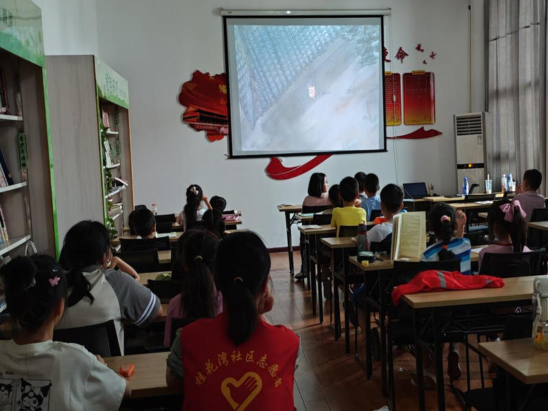 最后,实践队的成员们播放了一集关于孝的中华美德故事动画片。播放过程中,小朋友们聚精会神地观看影片,当画面定格在盗贼被江革那无垠孝心所触动,毅然决定释放其母子的温馨瞬间,小朋友们不约而同地松了一口气,眼中闪烁着纯真与喜悦的光芒。随后,影片转向江革丧母后的无尽哀思与三年守孝的坚韧身影,这一幕触动了每一个幼小的心灵,小朋友们或低头沉思,或轻声啜泣,无不为这份深沉的孝心所动容。影片落幕,实践队成员适时引导,鼓励小朋友们分享自己的感悟。孩子们纷纷举手,用最稚嫩却真挚的语言,表达了对江革孝心的赞美与无限敬佩。借此契机,实践队成员呼吁全体同学以江革为榜样,将孝这一中华传统美德内化于心、外化于行,从日常生活的点滴小事做起。以实际行动践行孝道,让国学经典中的孝道精神在现代社会中绽放出更加璀璨的光芒。