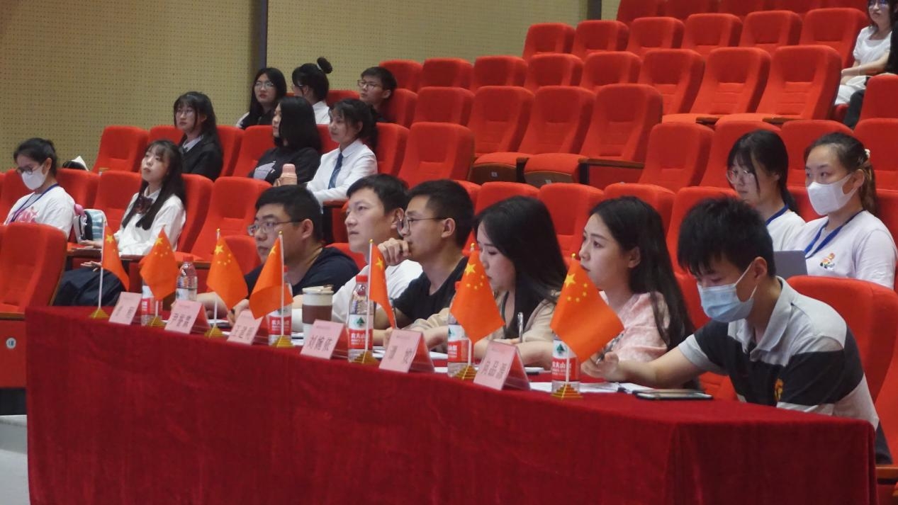 (通讯员:李金玉)5月24日下午,我校2022年度“喜迎二十大,永远跟党走,奋进新征程——百生讲坛”优秀主讲人决赛在学术交流中心举行。党群工作部宣传科老师刘婉依、心理中心老师曾程、人文学部历史学老师王建明、教育与艺术学部团学指导老师尹誉霖、高职二学部团学指导老师谭姣、校团委指导老师向品源担任本次比赛的评委。大赛由校团委学生副书记武如钰主持。