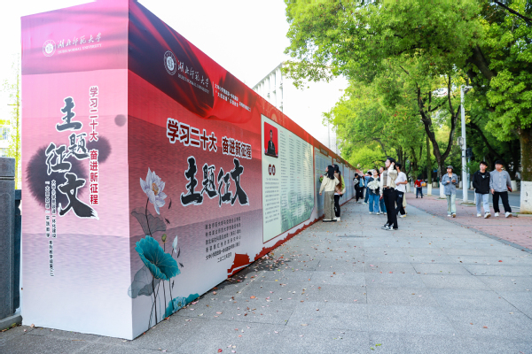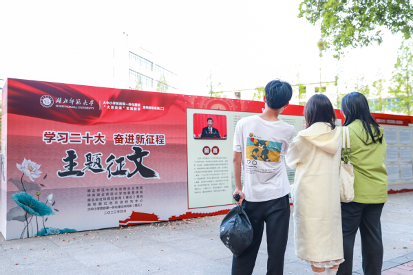 本网讯 4月10日,为期20天的“学习二十大•奋进新征程”主题征文暨“大思政课”实践教学、大中小学思政课一体化共同体建设优秀作品展在湖北师范大学正式开展。展出现场,一群青年学子正在一边认真欣赏阅读获奖作品,一边轻声畅谈着对党的二十大精神的学习体会、畅想着现代化强国的宏图远景。