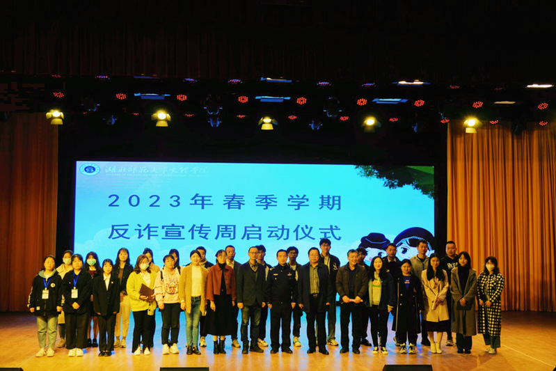 为进一步贯彻落实习近平总书记关于打击治理电信网络新型违法犯罪的重要指示批示精神,营造全员防诈、全校反诈的浓厚校园反诈防骗氛围,进一步加强校园反诈骗宣传教育工作,全面提升全校师生的安全防范意识和自我防范能力,构建稳定、安全、和谐的校园环境。3月10日中午,湖北师范大学文理学院反诈宣传周启动仪式在校学术交流中心一楼报告厅举行。校领导、学生工作部、后勤保卫部、汪仁镇派出所相关负责同志、各学部分管学生工作副书记、辅导员老师及学生干部共600余人参加启动仪式。仪式由学工部副部长陈小龙主持。