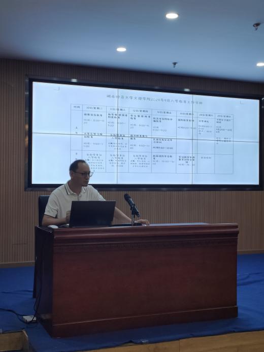 汪崇文指出,新生辅导员要牢牢把握新学期的工作主线,理清整体工作脉络,有条不紊地投入新生入学相关工作当中。他强调,新生辅导员要主动了解新生信息,积极配合迎新工作,并从新生入学教育、教学管理规章制度教育、图书馆服务、防范电信诈骗宣传、校园消防安全、国家教育宣讲等多个角度介绍9月新生入学教育的工作安排。