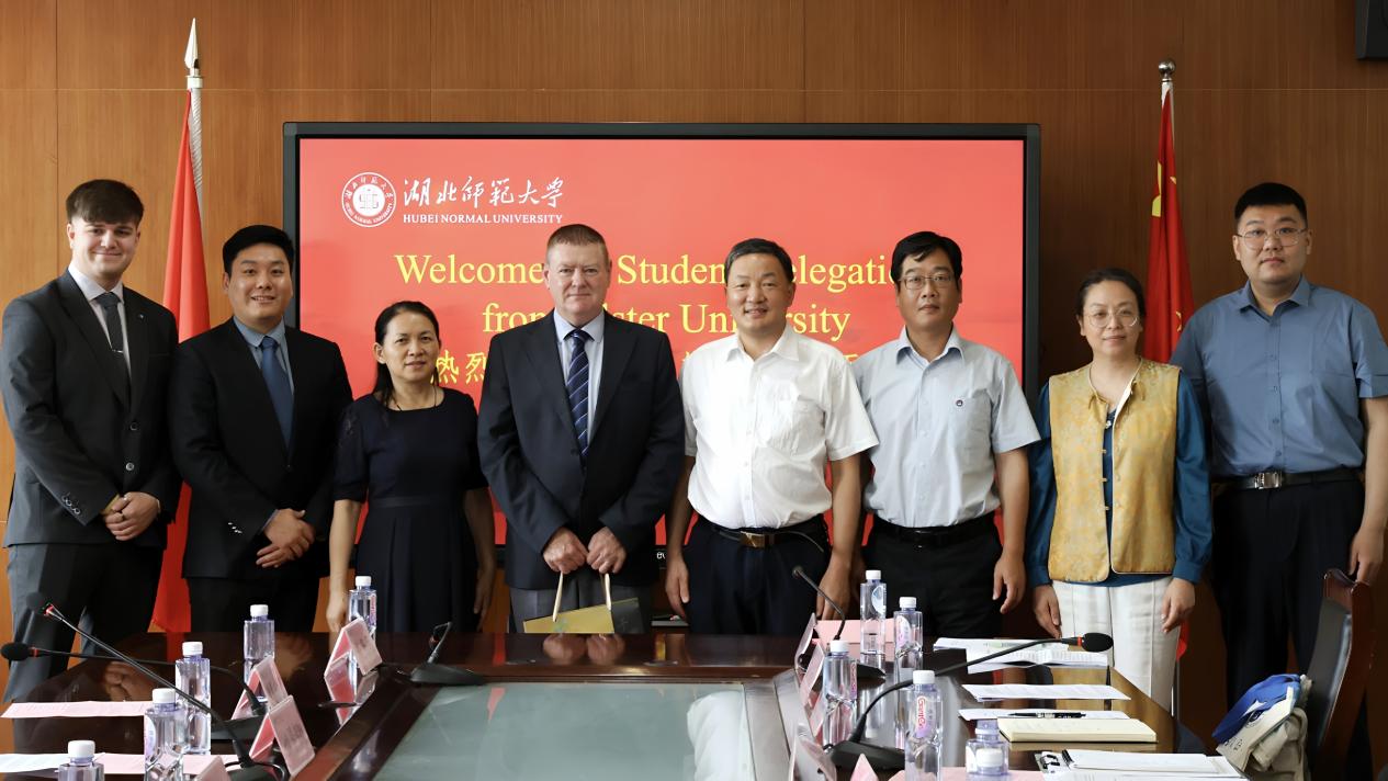 近日,英国奥斯特大学师生代表团一行29人访问我校,在黄开展为期一周的文化交流活动。此次活动旨在深化两校友好关系,促进中英青年相互理解,推动教育国际化与文明互鉴。6月3日上午,学校在科技大楼为代表团举行欢迎仪式。校党委副书记、校长雷儒金,黄石市委外办副主任易静平,奥斯特大学教师代表及我校相关学院负责人出席仪式。仪式由国际交流合作处处长龚波主持。